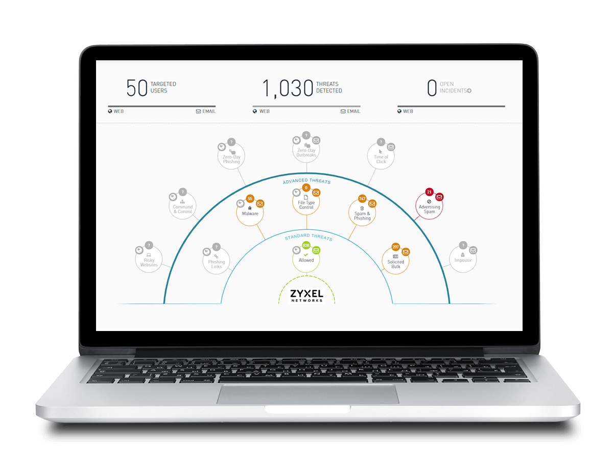 Being a cloud service, security will always be up to date. Zyxel CES operates a comprehensive, cloud-based security threat intelligence network that processes over 25 billion daily transactions and blocks up to 300 million threats per day on security cloud platform.
