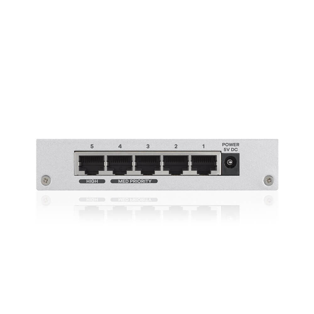 The Zyxel GS-105B v3 5-Port Desktop Gigabit Ethernet Switch connects network devices and the home network at blazing Gigabit speed. The newly designed QoS ports guarantee smooth transfer for bandwidthintensive applications such as VoIP and data communications.