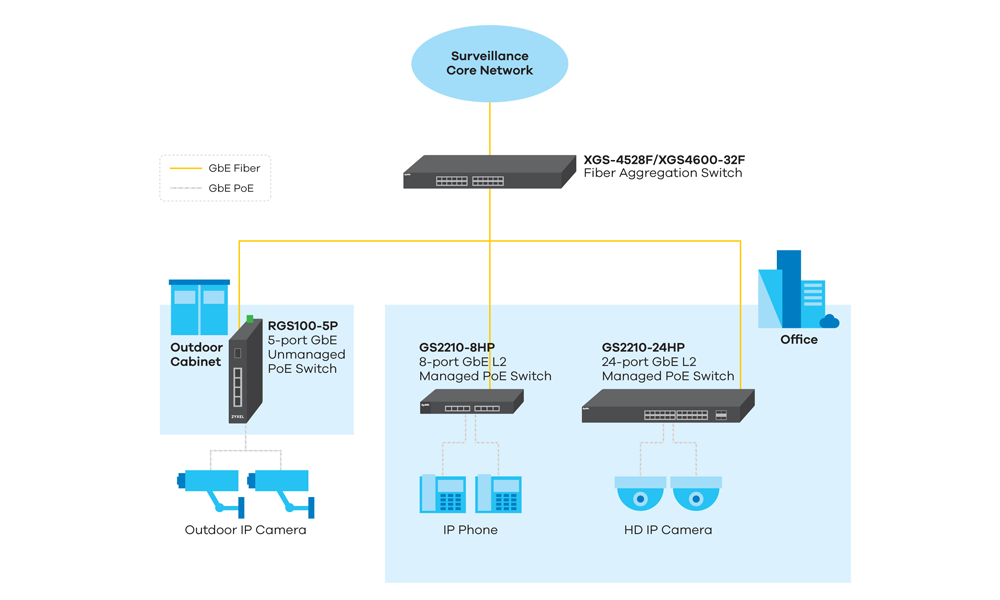 Zyxel’s newest rugged PoE switch RGS100-5P is designed with ruggedized concept to meet stringent outdoor and harsh network deployment scenario. The wide-ranging operating temperature from -40°C to 70°C enables RGS100-5P operates with reliability in harsh environment. Also, the IP30 standard metal mechanism and fanless design allow RGS100-5P withstand dusty environment.