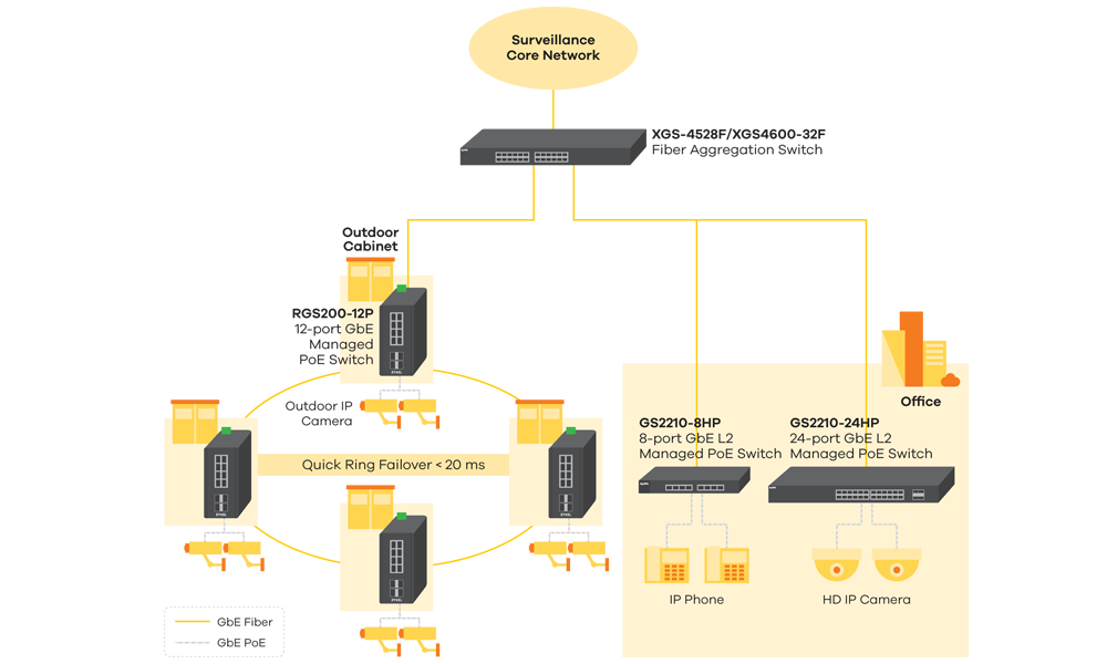 The Zyxel RGS200-12P creates fault-tolerant networks with redundant ring technology and rapid self-recovery capability to prevent interruptions. In the event of downtime caused by a network error, the rapid failover will restore normal operation in less than 20 ms. In addition, it is also easy to manage RGS200-12P through an user-friendly web-based GUI.