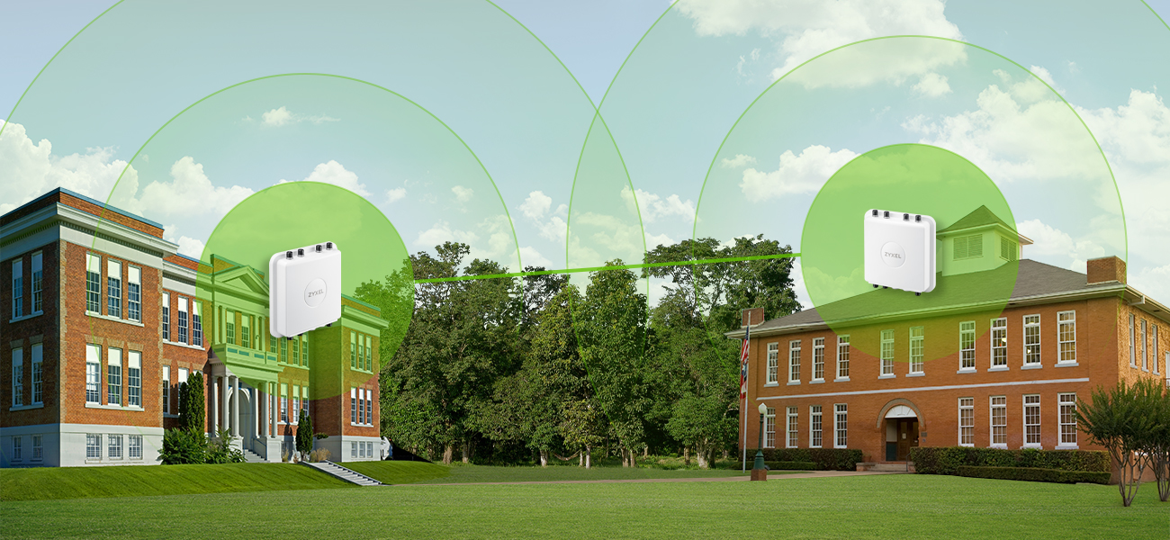 Zyxel’s Smart Mesh Technology not only can form dynamic wireless links between APs to extend coverage in the high-density outdoor environments, but also bridge the wireless connectivity from one building to another. The WAX655EE is an ideal choice for expanding your wireless network to busy outdoor areas as well as forming an interconnected wireless network through outdoor inter-building links.